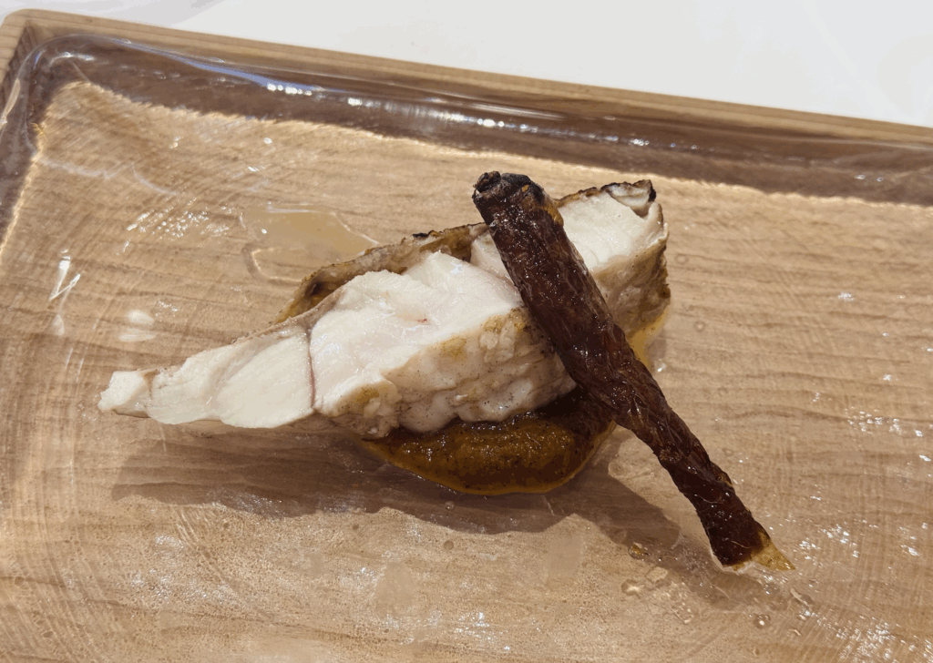 九十九里産のふわふわ食感のマハタに自然農法の甘い人参。そこに爽やかで甘味の強い金柑のペーストが合わさります。