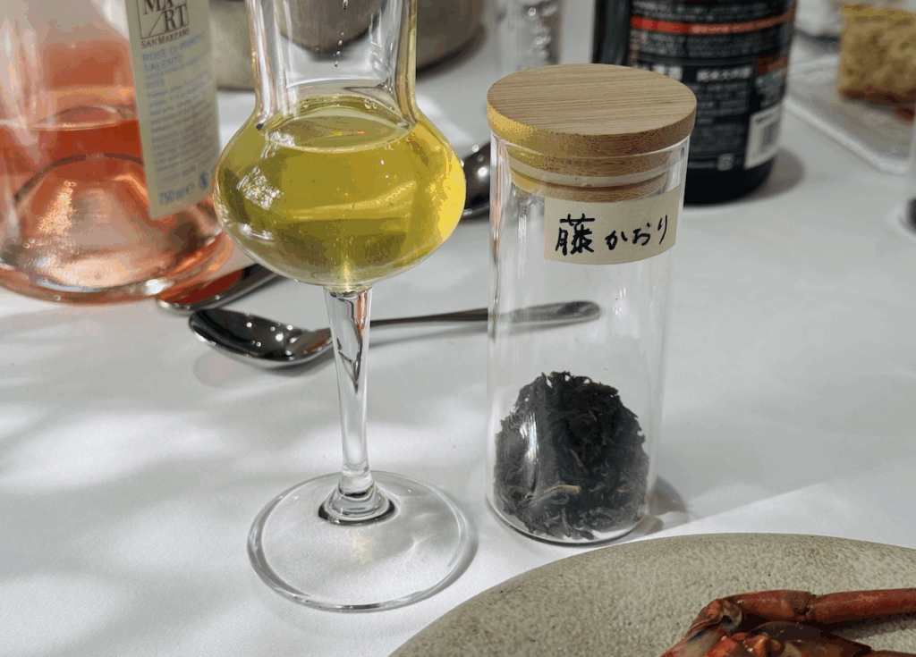 そのままのブドウジュースと、ならの木のチップでスモークしたブドウジュース。スモークしてからしばらく経つとジュースと融合しまるで焼き芋のような、ほっこりとした甘味が引き立ってきます。