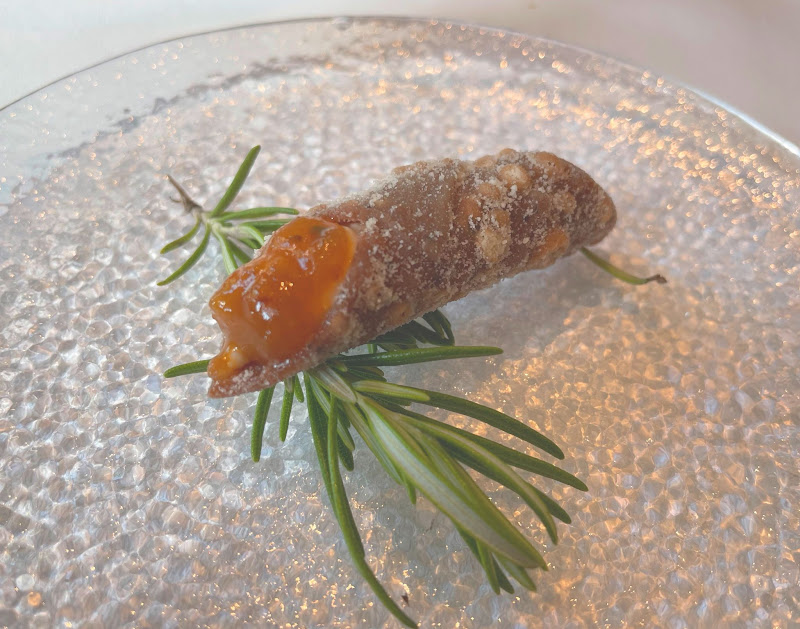 地粉のカンノーリ 自家製リコッタ詰め、梅のジャム添え