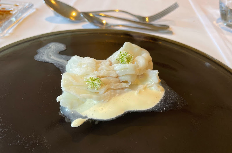 九十九里神経〆地魚(イシダイの腹身と尾の身のペッシェクルード)